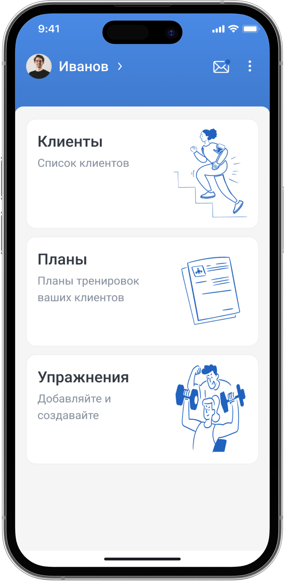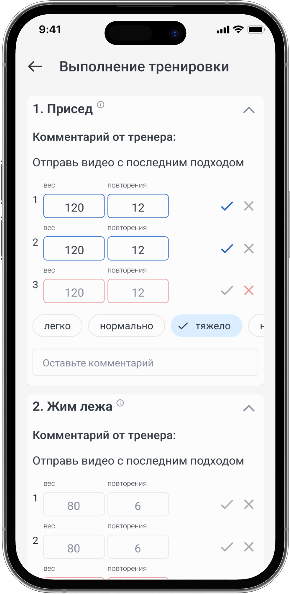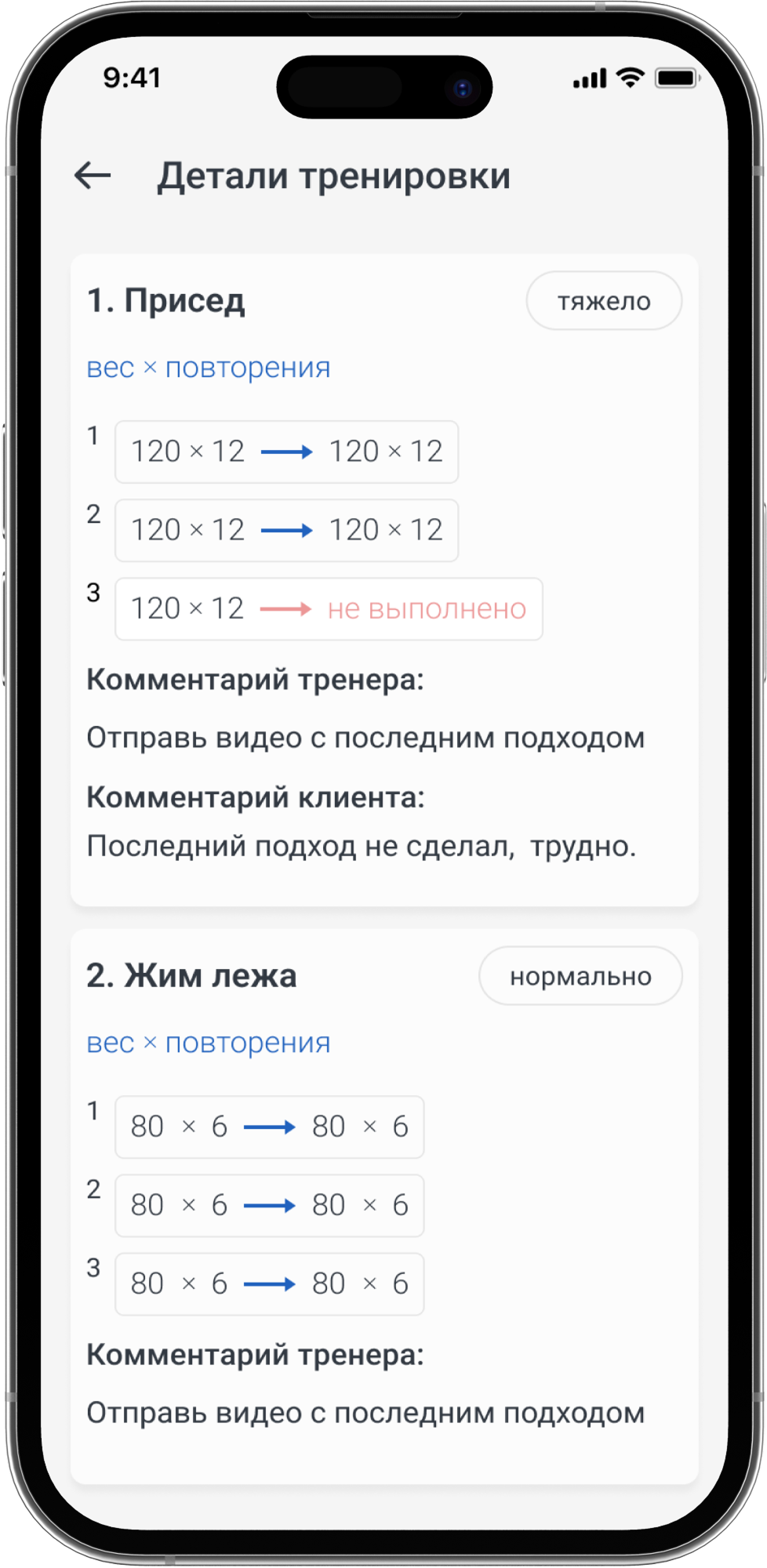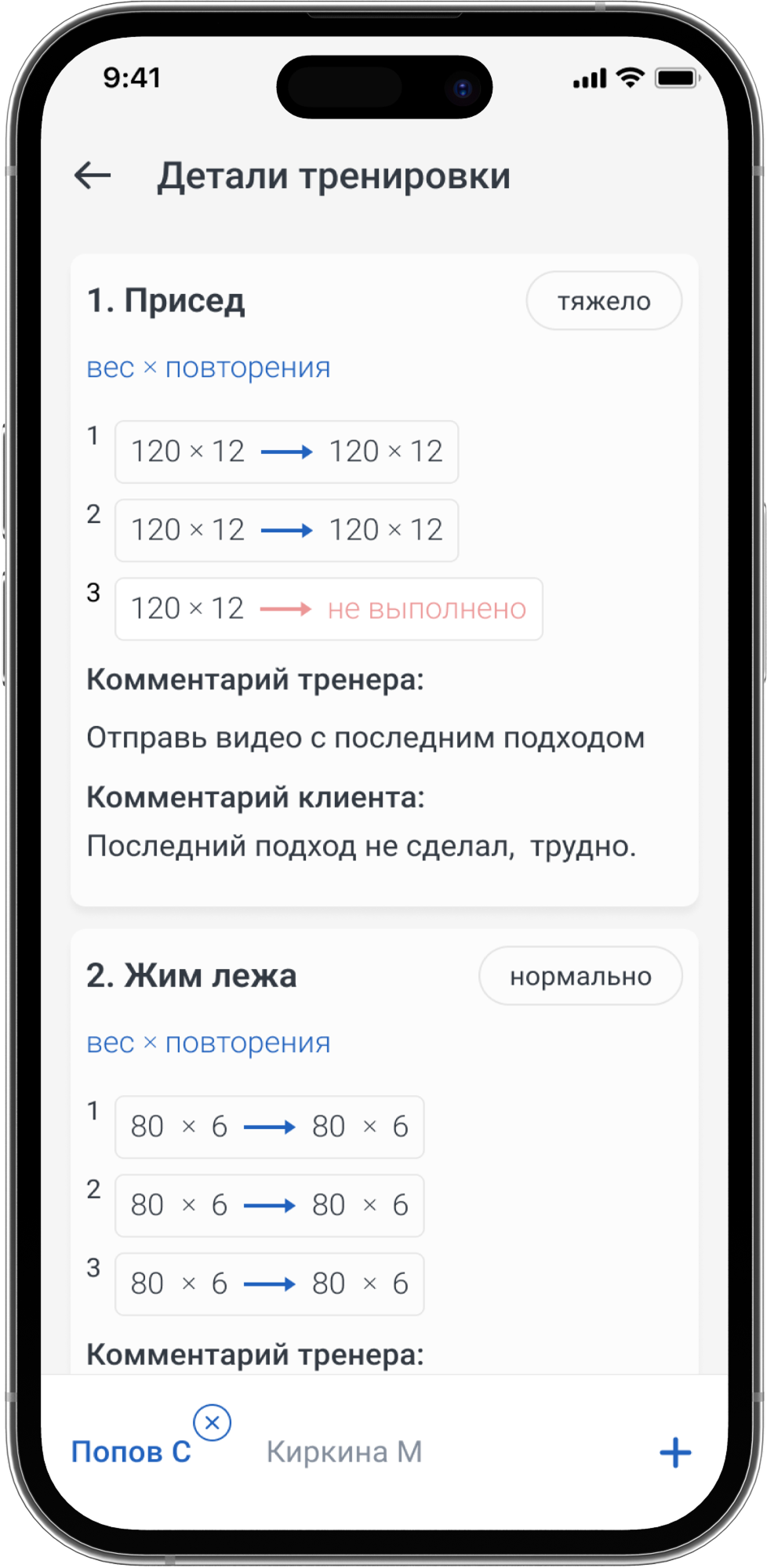 Добавляйте текущих клиентов и ведите их дистанционно: планы, прогресс, комментарии — всё в одном