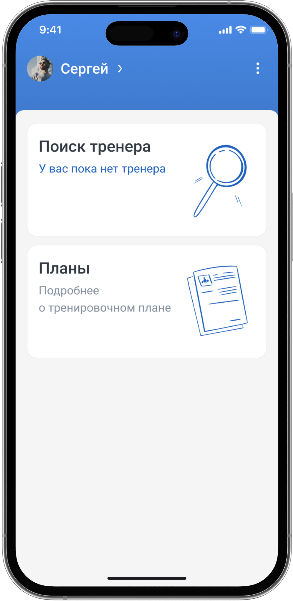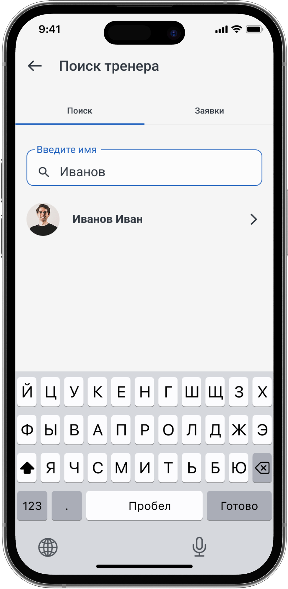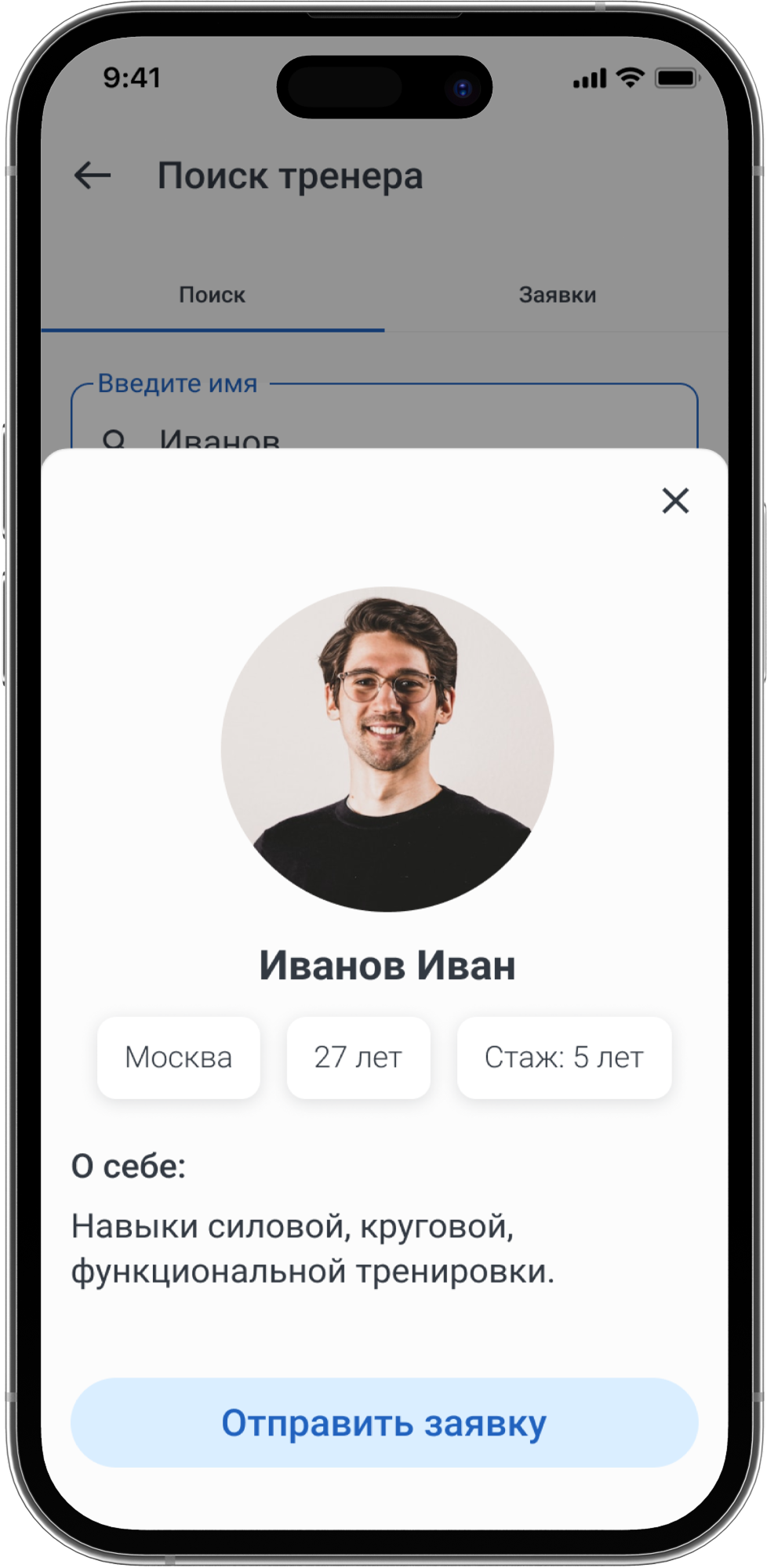 Найдите тренера по имени или перейдите по его персональной ссылке и отправьте заявку на